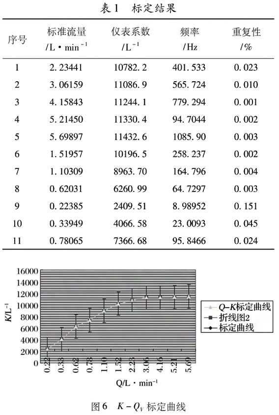 ②按分段线性化处理,在满足1%误差要求,可将涡轮流量计量程扩展到0.29588~5.13462l/min量程。